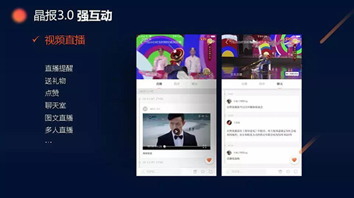 不僅如此,在“視頻直播”版塊,用戶(hù)可以邊看直播邊送禮物、點(diǎn)贊、進(jìn)入聊天室發(fā)表意見(jiàn);在“問(wèn)吧”、“投票”、“爆料”等版塊,用戶(hù)可以把疑問(wèn)、意見(jiàn)建議和身邊大小事通過(guò)APP平臺(tái)發(fā)送給晶報(bào),形成雙方互動(dòng)等等。